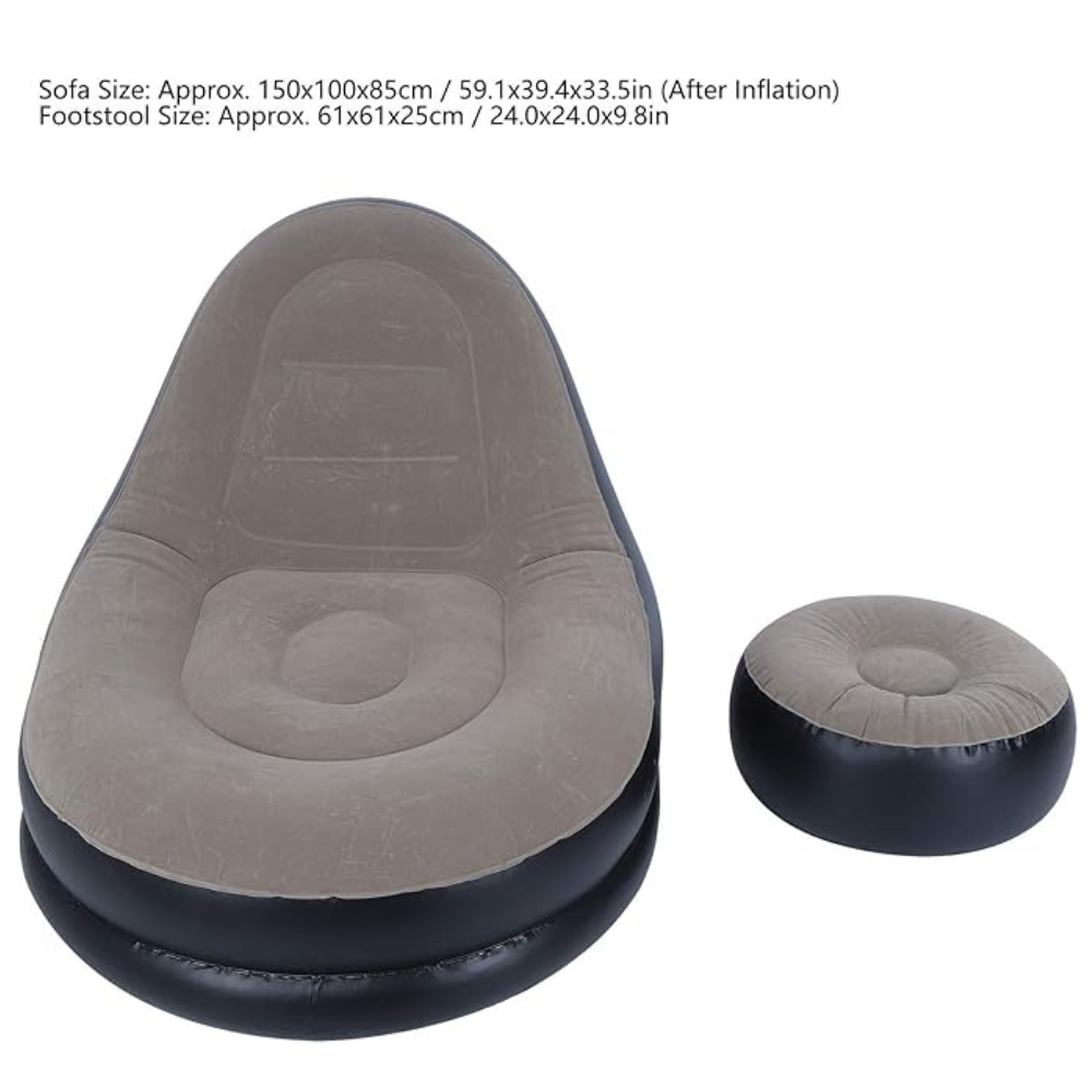 مجموعة واسعة من الاستخدامات:أريكة مثالية للعديد من الأماكن مثل غرفة المعيشة وغرفة النوم والشرفة والحديقة والفناء الخارجي والتخييم والسفر والشاطئ والتنزه. مقاس الأريكة: تقريبًا 150×100×85 سم / 59.1×39.4×33.5 انش (بعد النفخ). مقاس مسند القدم: تقريبًا 61×61×25 سم / 24.0×24.0×9.8 انش.