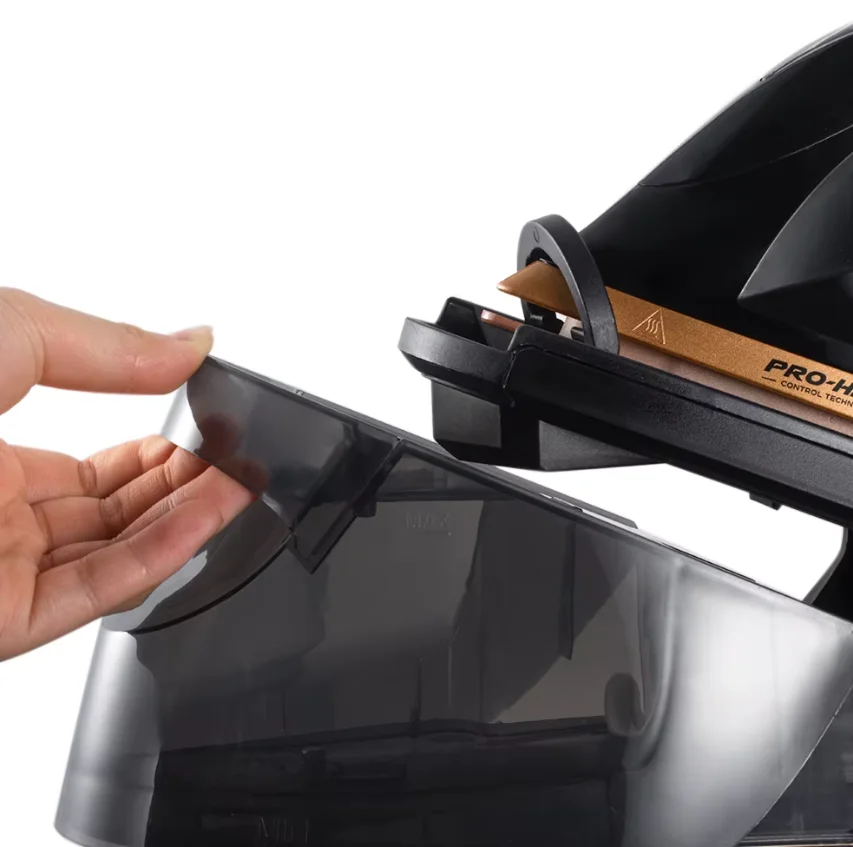 خزان مياه بسعة كبيرة: يتيح لك كي كميات كبيرة من الملابس دون الحاجة لإعادة التعبئة المتكررة، مما يوفر وقتك وجهدك.